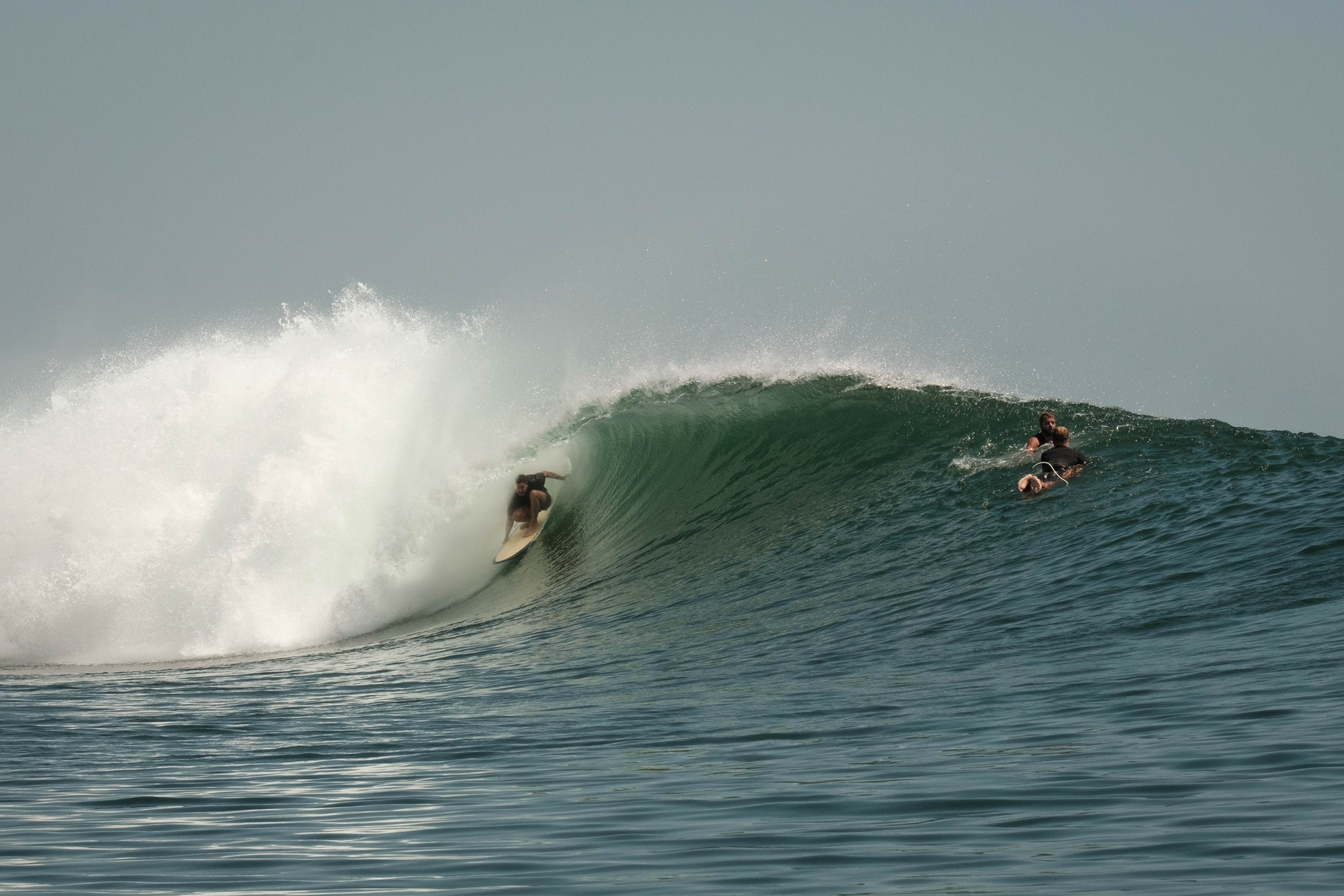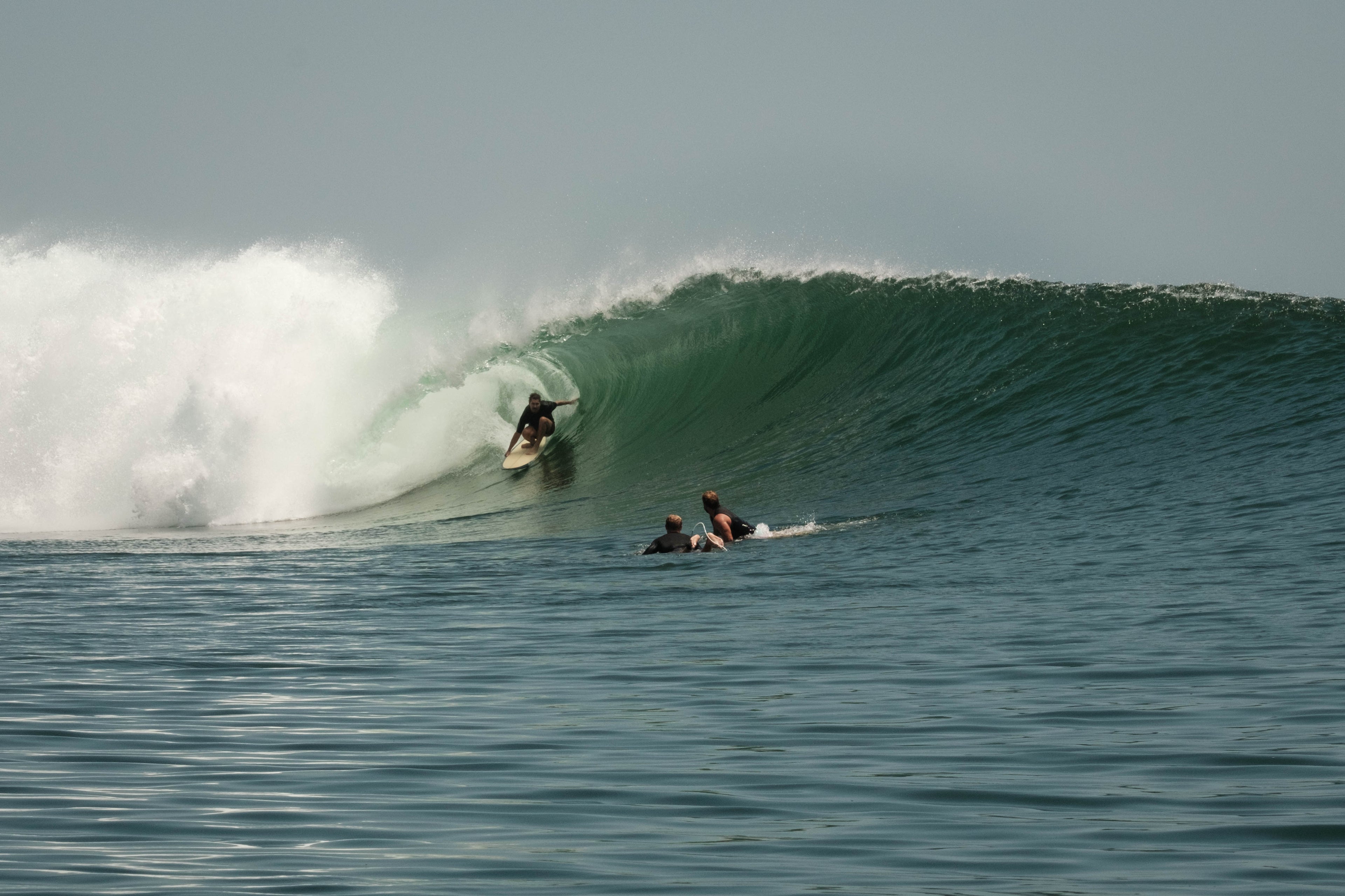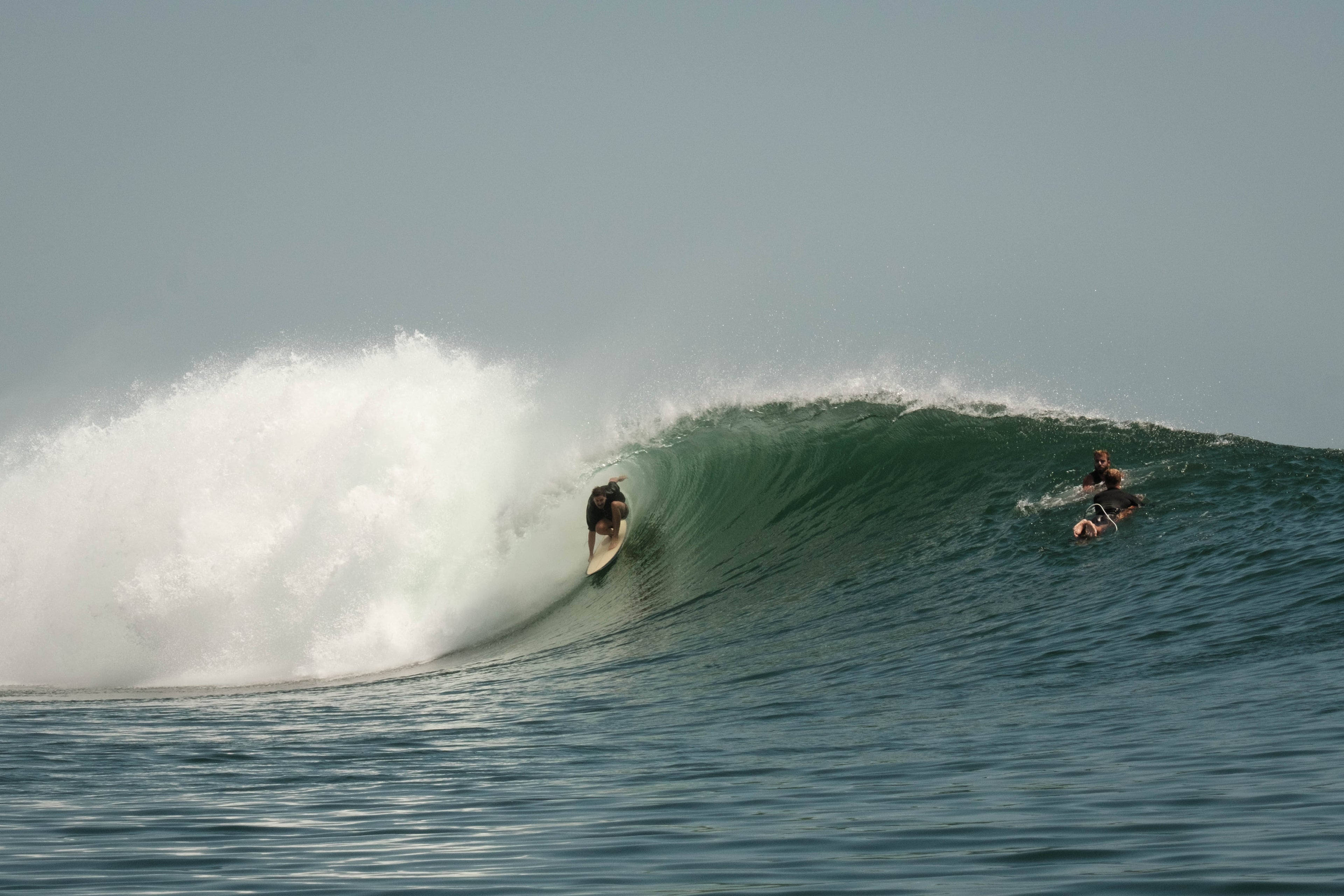 I spent the first few days familiarizing myself with the reef and the wave energy mostly surfing Kongs. We were waiting on a bump in the swell and every day the size was a little bigger. I'd spend my morning drinking coffee in the tower and watching the tide push in over the reef. Studying the waves. When the reef finally disappeared I'd gear up and make my way through the jungle, up the point and find the key hole. Every morning there was a steady pilgrimage of surfers making the same trek as most were on the same schedule. Breaking through the line of white wash to open water you would find the pack of Money Tree surfers to your right. I couldn't help myself, I'd always turn left and head up the point to sparser waters. As you moved up Kongs you'd come across a small packs of surfers working a section and you'd get glimpses of people surfing waves further up. Everytime I thought I made it to the top of Kongs I'd be surprised to see a one or two people further up the point. Late one glassy morning, a couple days in, the surf was super fun and I kept trying to paddle to the top of Kongs, but then a wave would come, so I'd turn and catch it. This kept happening. I could see the Money Trees pack way down the point. I could see people further up. I kept trying to get further up the point but a wave would come so I'd turn and catch it. This went on for a long time and I ended up in a sort of wave daze. Eventually I stopped to take a moment around and realise I'd been surfing by myself for most of the session. The point really is that long. Like a theme park you can pick your ride.