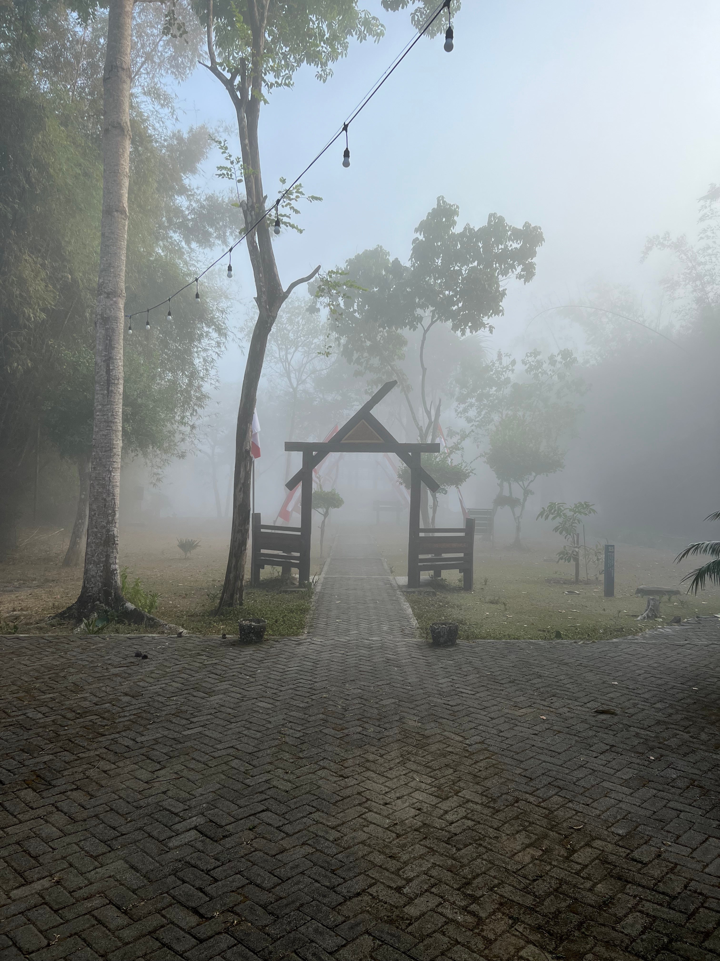 I was woken early the next morning by weird sounds on my roof. Hissing and monkey noises, scampering, growling and screeching. A real racket. Snake? Monkey? Snake attacking monkey? Was it on the roof, or in the roof...? Today was supposed to be the day the swell hit so I abandoned my hut to the jungle and went to check the swell. Outside was a thick sea mist. So thick that you couldn't see the reef from the tower, let alone the waves. I resigned myself to coffee and patience. The mist lasted many hours and wasn't until mid morning when it finally cleared.