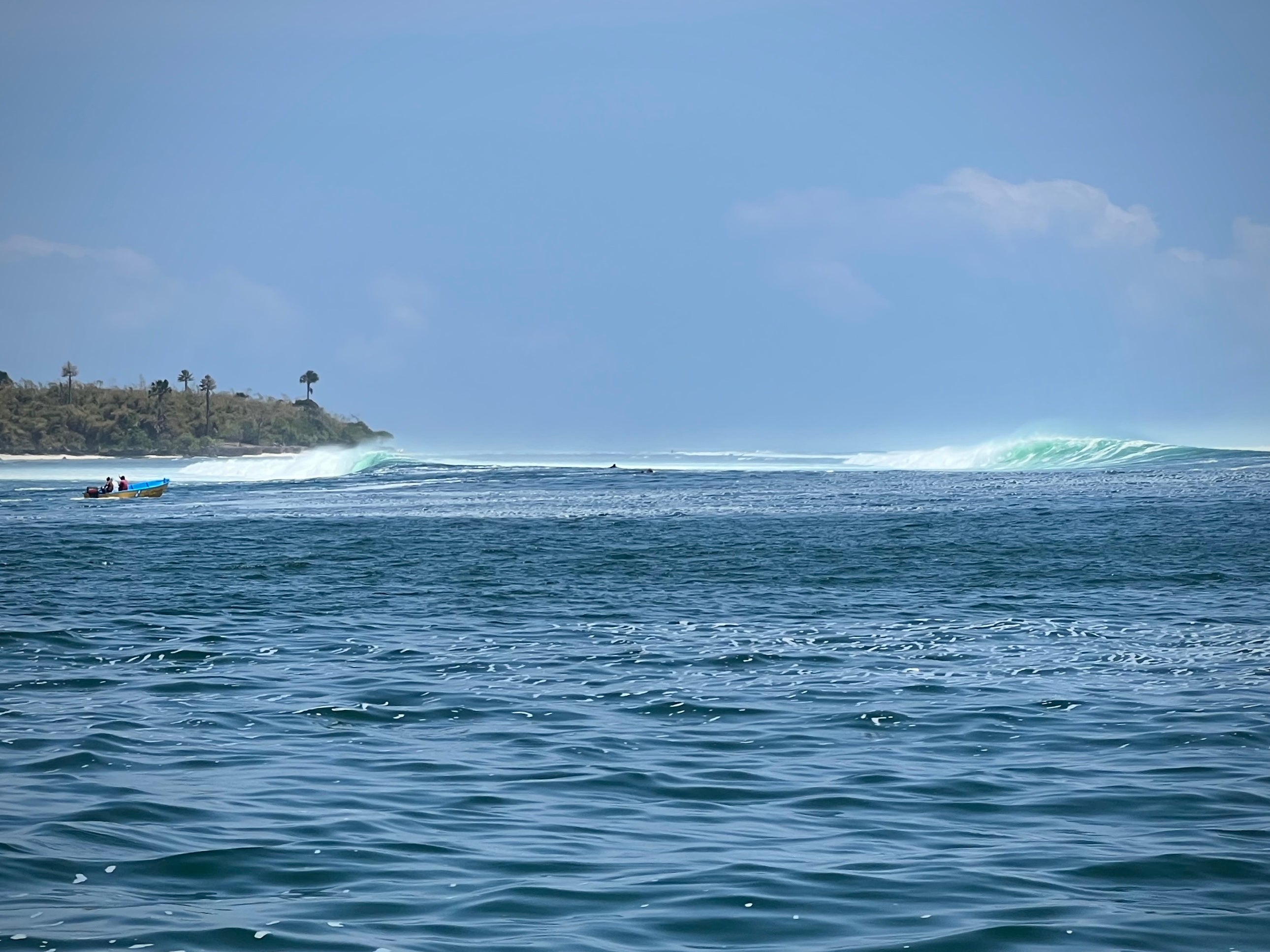 Paddling back through the line up I found Ryan and we chatted. The swell was here but it was raw. Everytime a set hit Money Trees, water would rush out over the reef like a toilet flushing and lump up the Launch Pad peak. The froth factor was high and everyone was trying to shoot their shot. I managed to get two more waves and one barrel. Although all were bigger than the day before it was less perfect with more water moving. But it was an amazing experience just to be in the water and get a feel for such a swell.