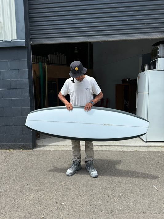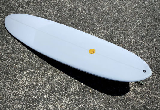 Double Ender Down Rail Midlength - 7'2 White Pigment and Glassed in 10' inch Rake