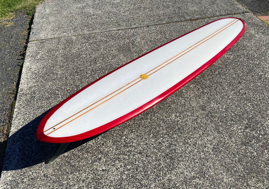 Used Big Log Pin Tail - 9'7 Double Cedar Stringer Ruby Red wrapped bottom