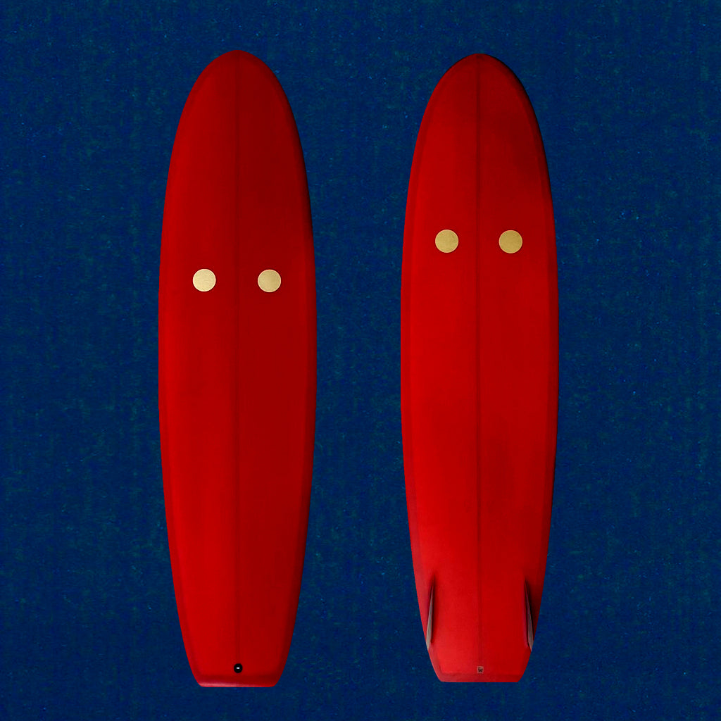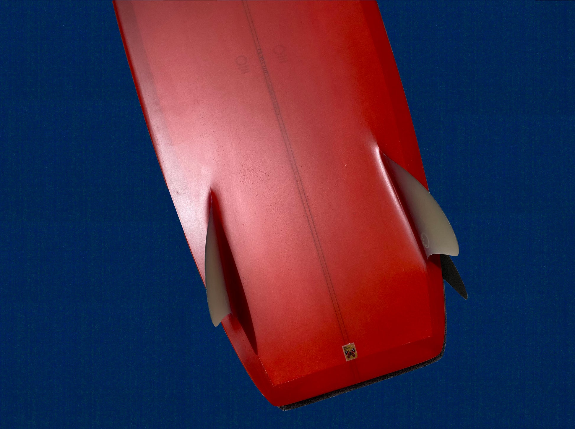 Here we have a Simmons esq. template with a Liddle inspired bottom. The large surface area makes for the fastest board around. And the Hull is surprisingly responsive. Bottom contours include a rolled hull entry and a concave exit. The hull entry helps get you through the slower fatter parts of the wave, and then lean back and feel it take off. Suits a surfing approach orientated towards trim, shoulders back and feet together.
