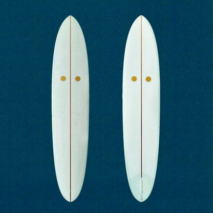 Fresh out of the factory! The Maunganui Chip. Inspired by Dale Velzy and the seminal ‘Malibu Chip’ of the late 50’s. Think surfing from the middle of the board and the big drop knee turns of Phil Edwards. Design elements include a tweak on our popular 'Hotdogger' rocker, a subtle concave in the nose through to a flat tail, and a 50/50 rail through to a sharp down rail out the tail. If you look closely, Ryan Glover assym’d the tail on this one to help with cutbacks on the heel rail.
